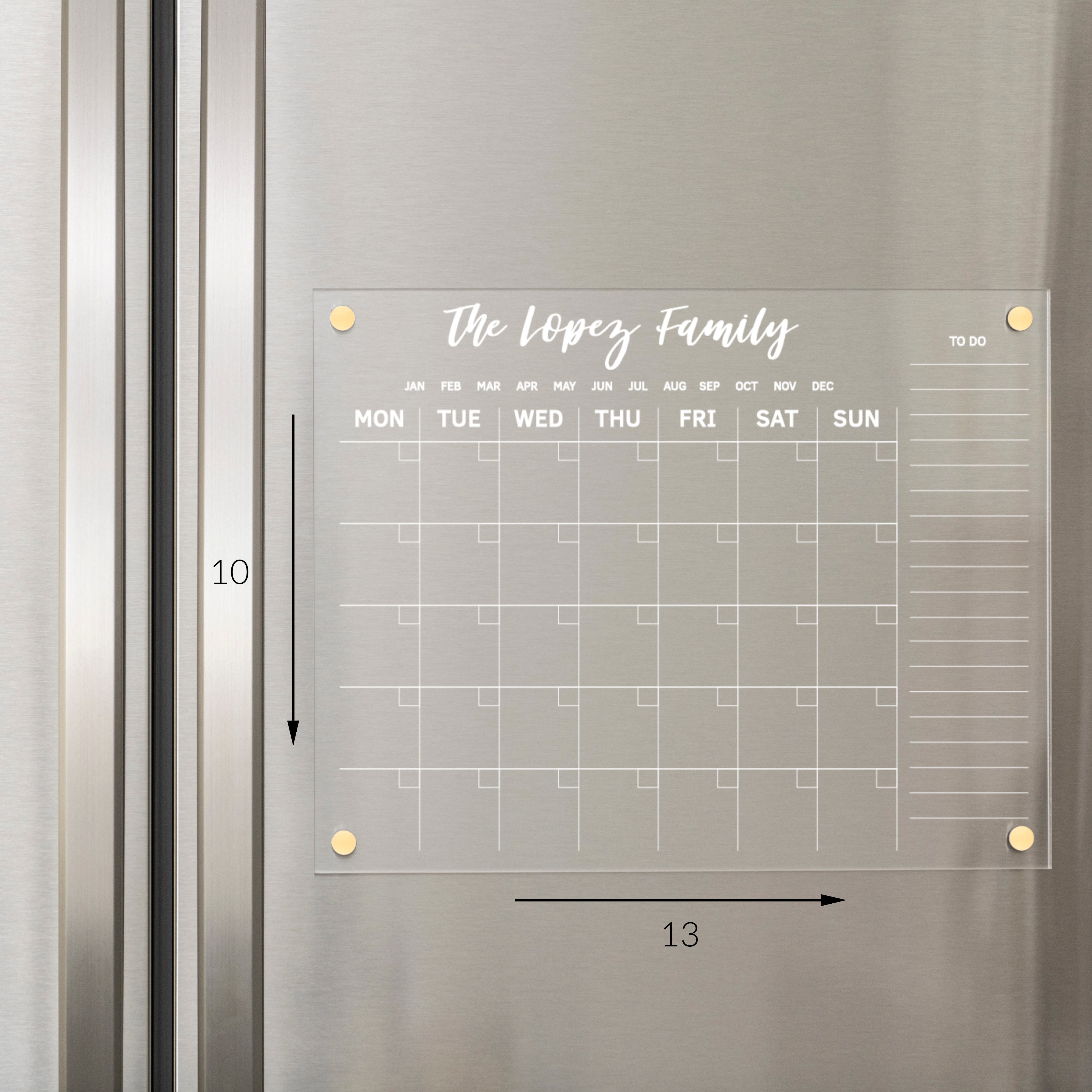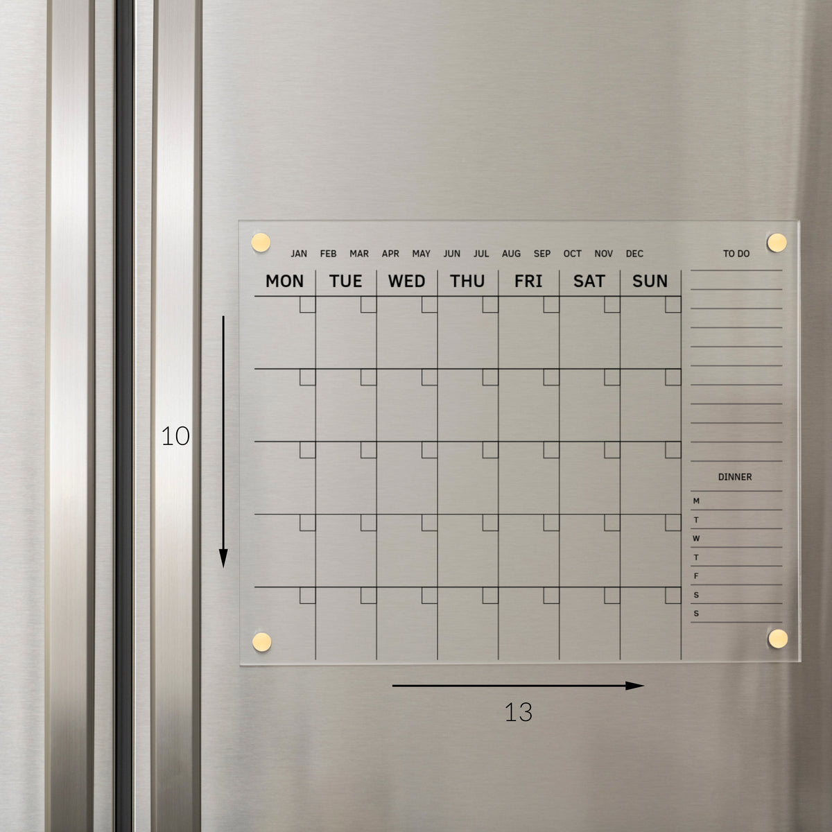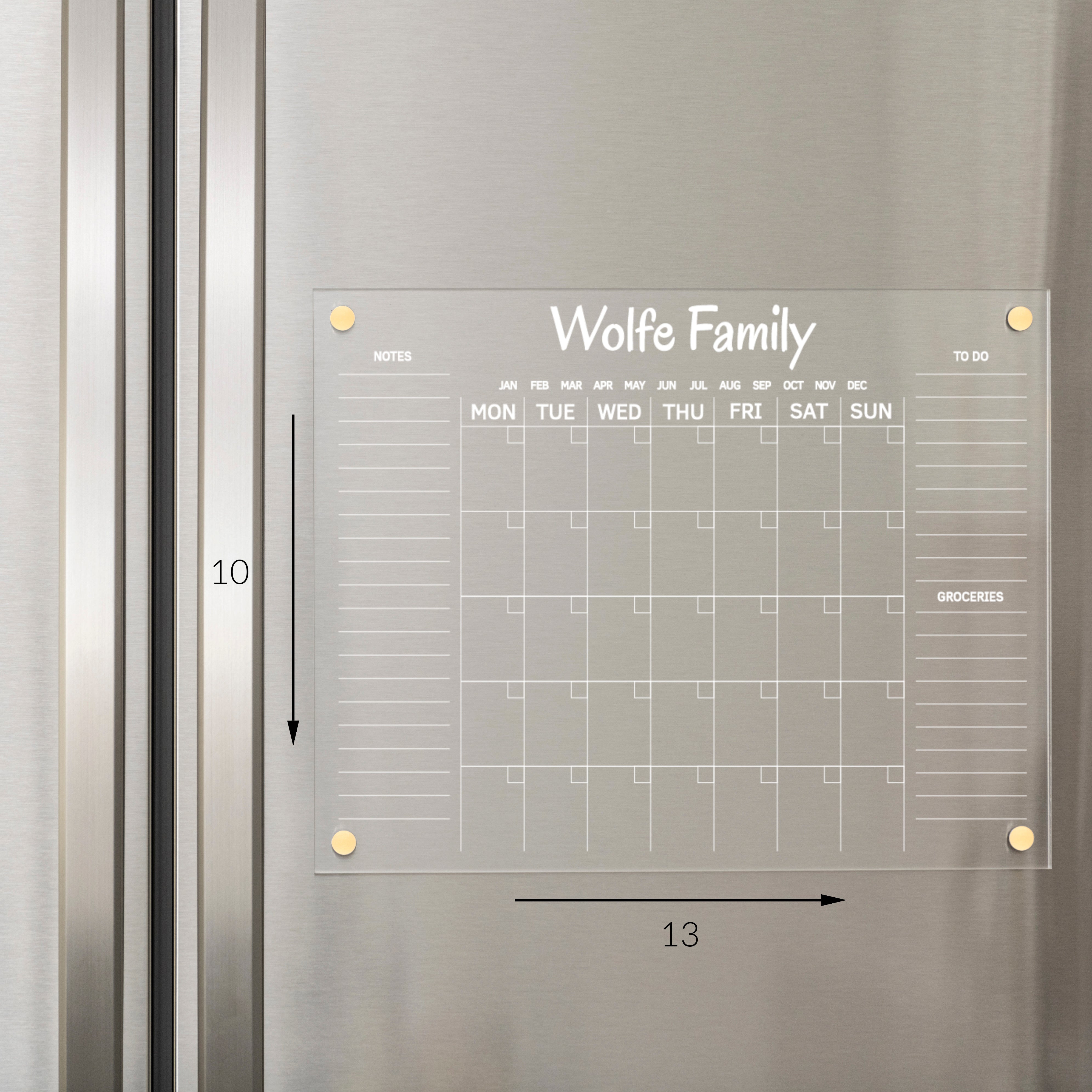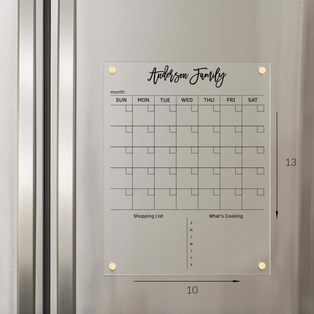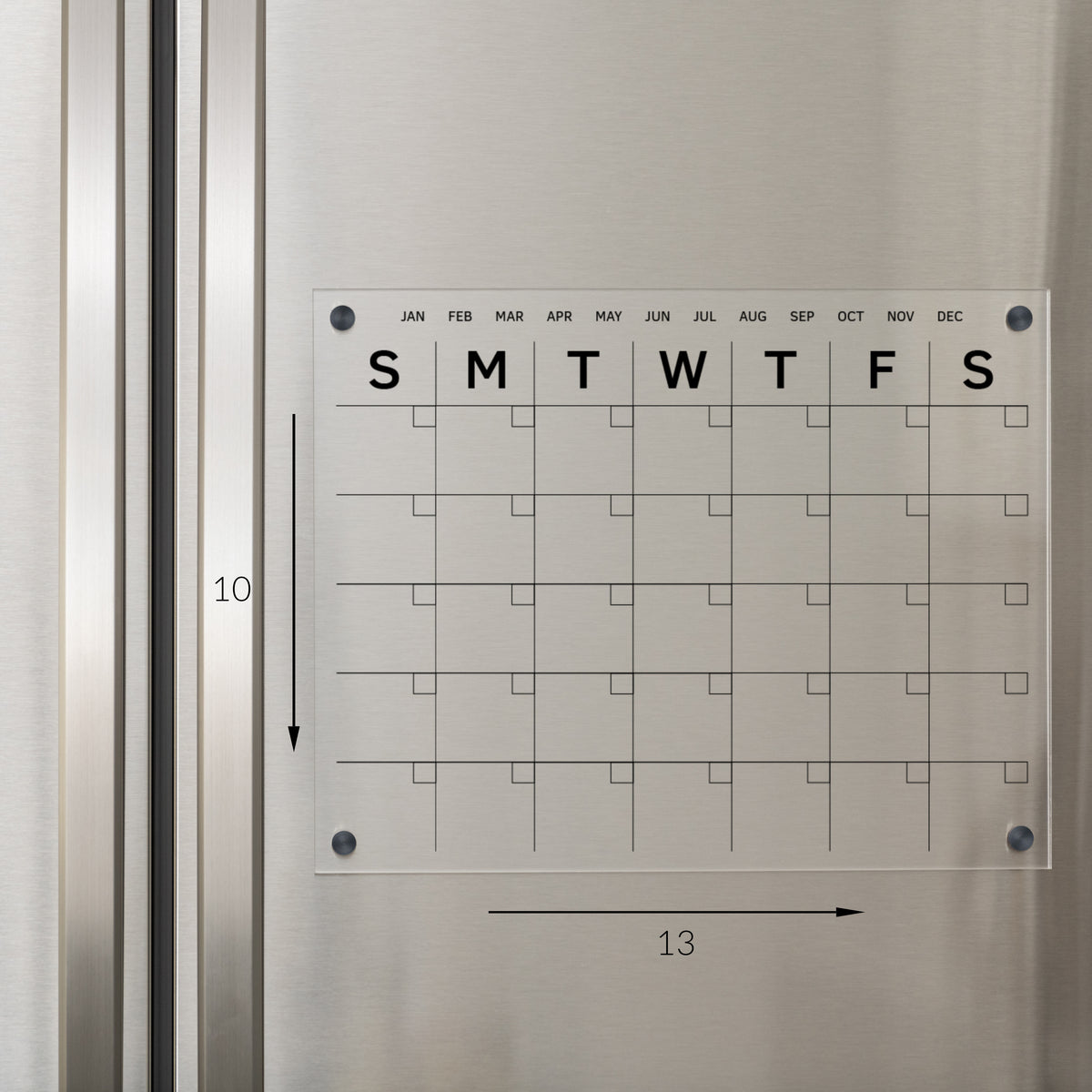 Keep track of birthdays, events, practices, appointments and more with this acrylic calendar. Stay organized all month long with daily boxes and up to three custom sections, such as menu, to do list, or notes.