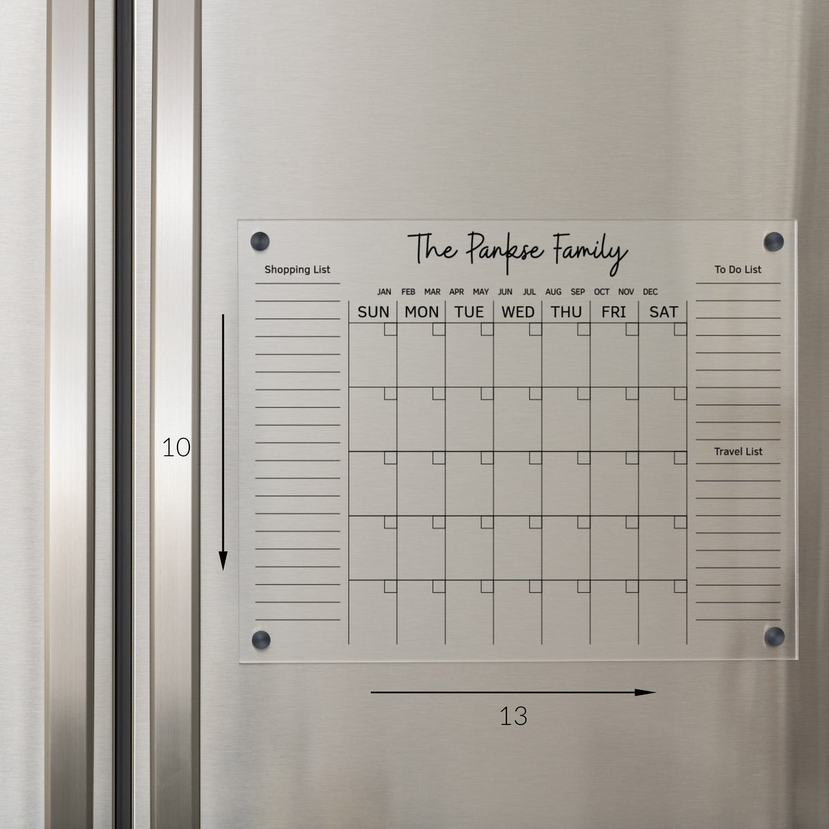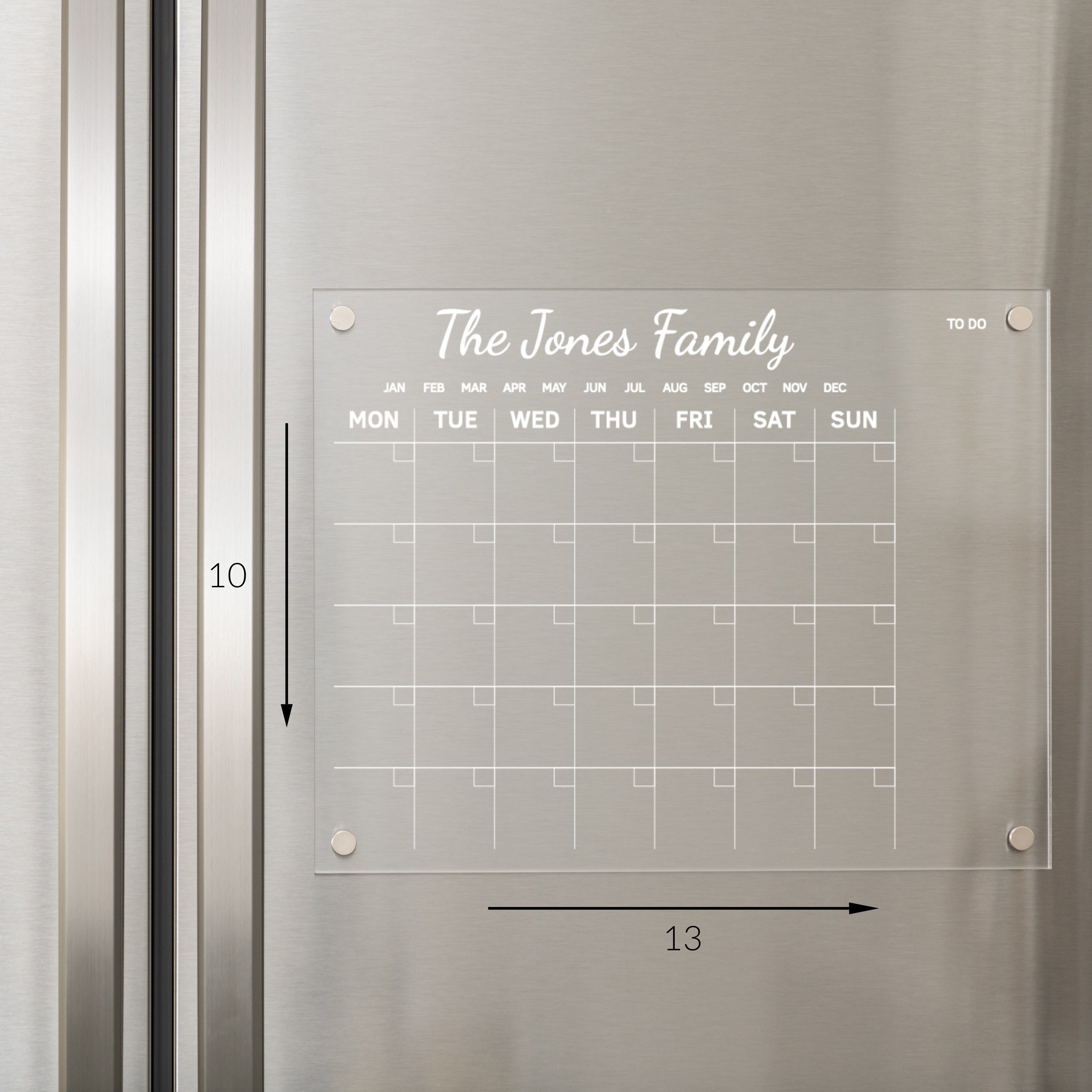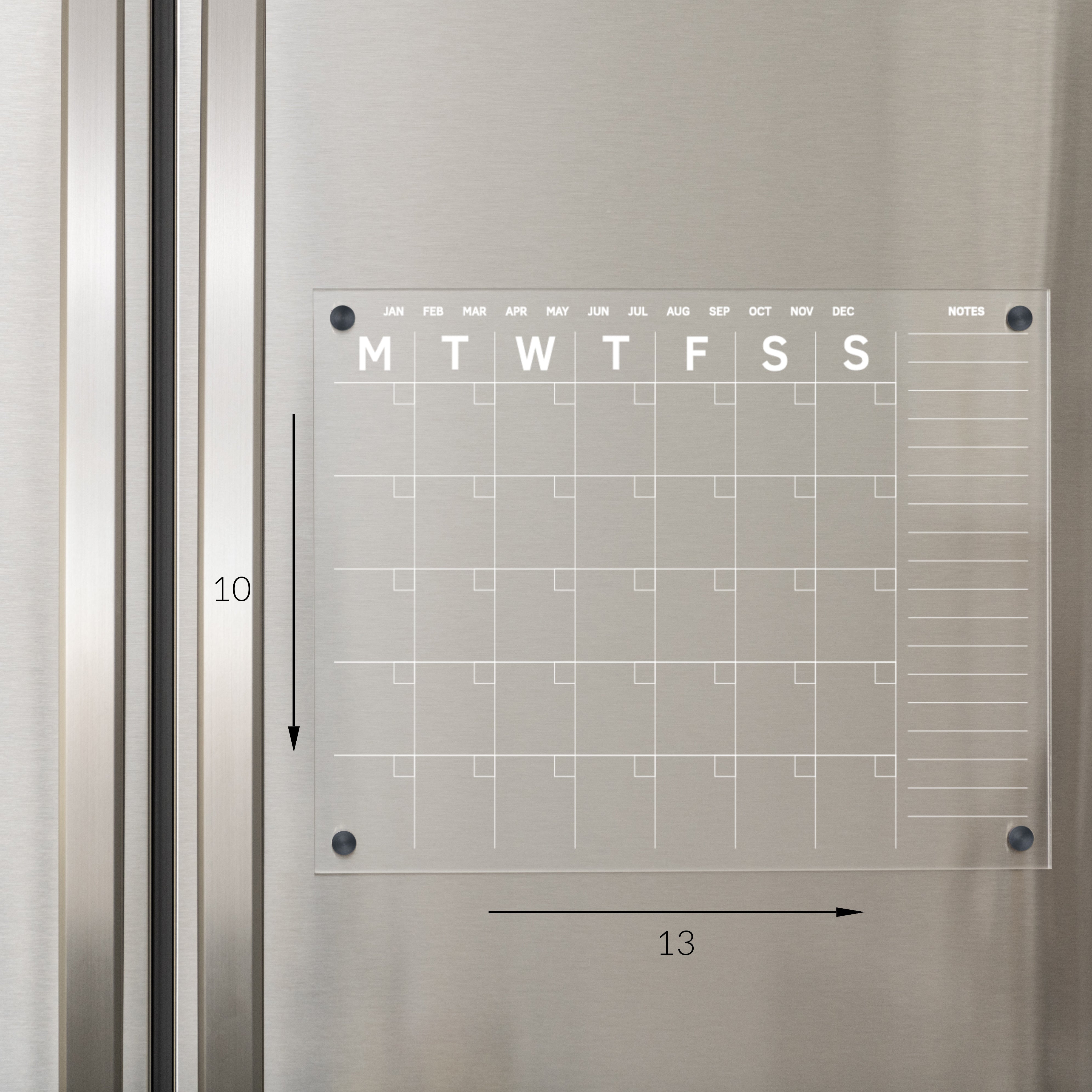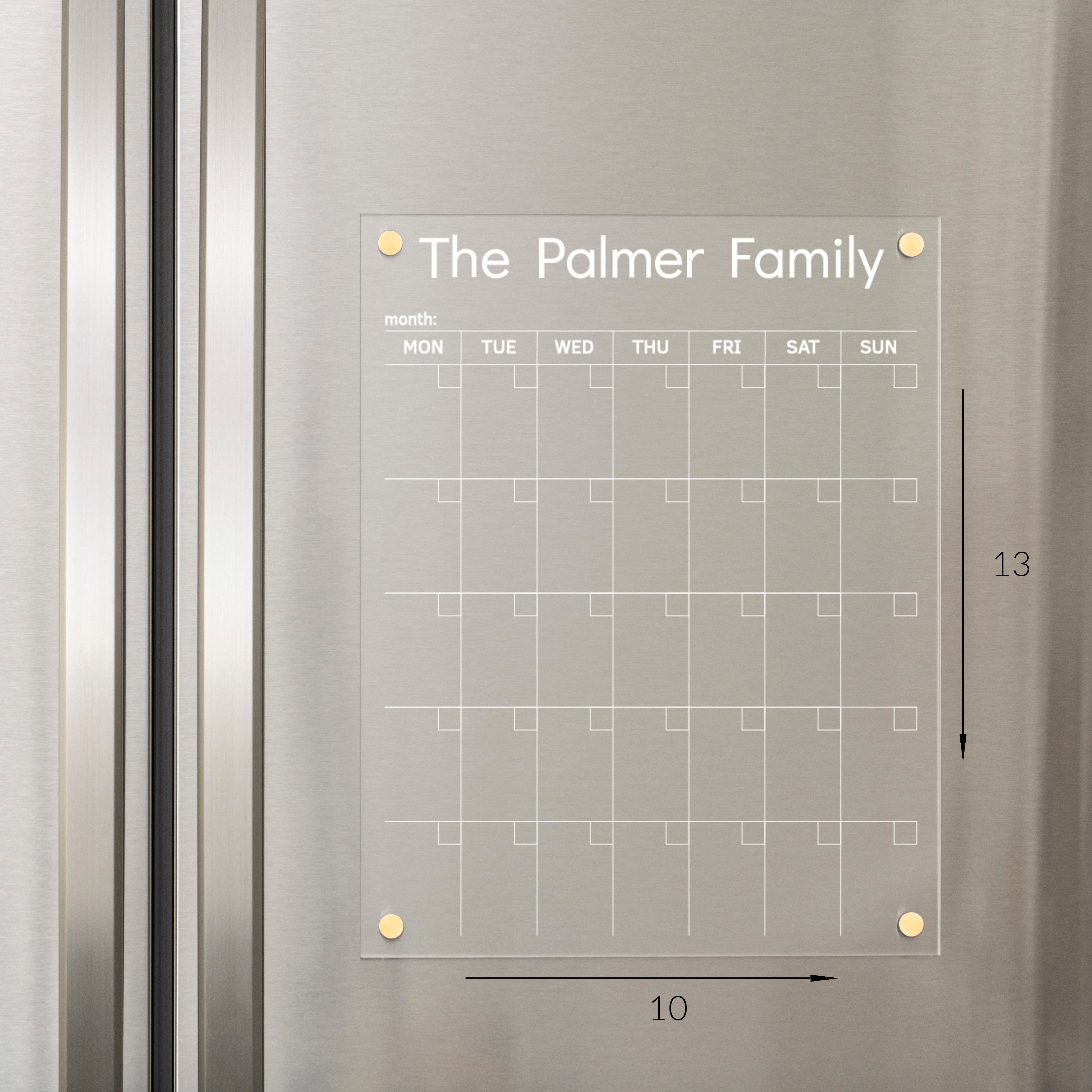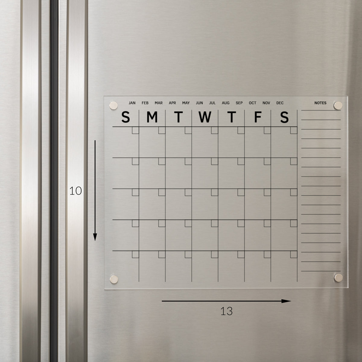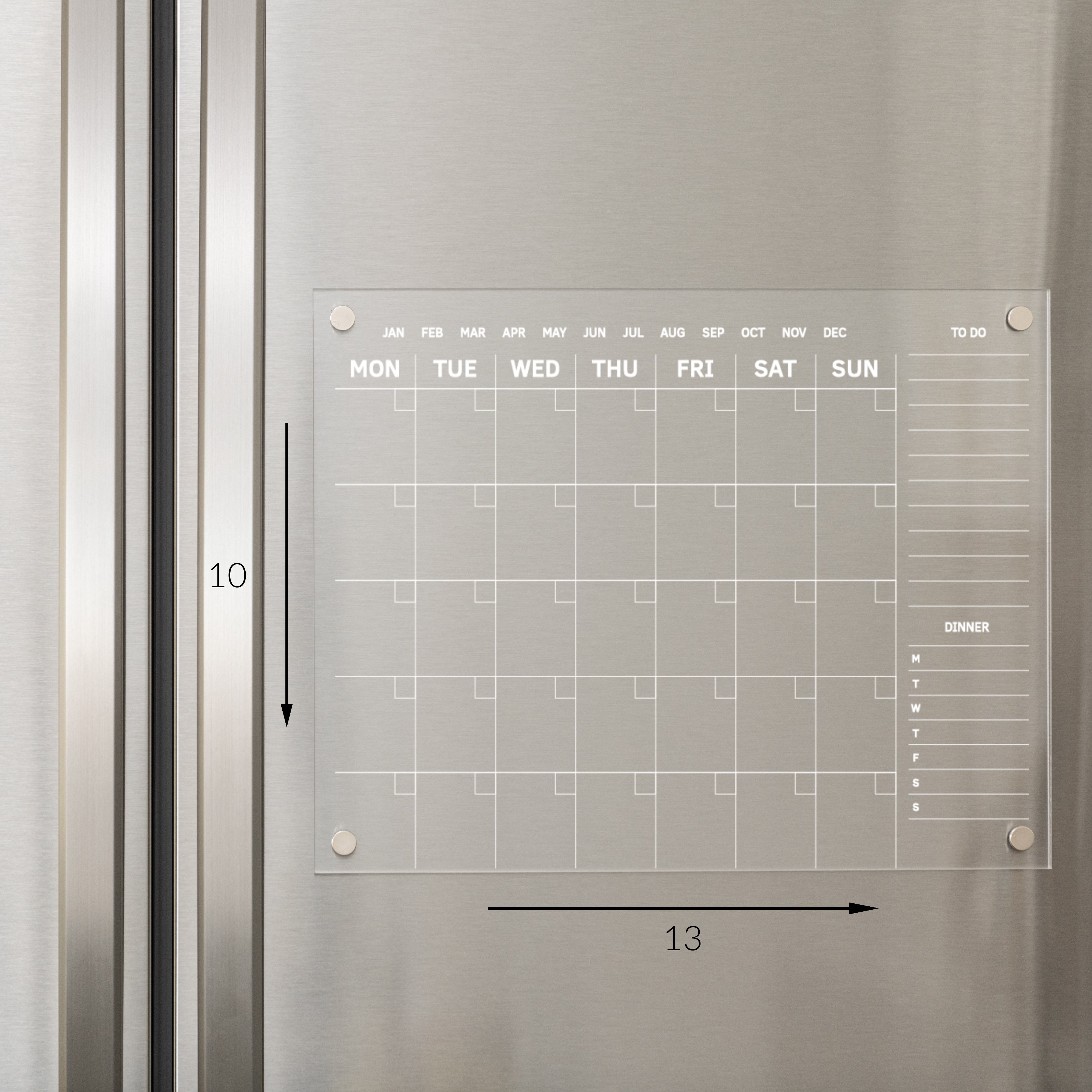 Keep track of birthdays, events, practices, appointments and more with this acrylic calendar. Stay organized all month long with daily boxes and up to three custom sections, such as menu, to do list, or notes.