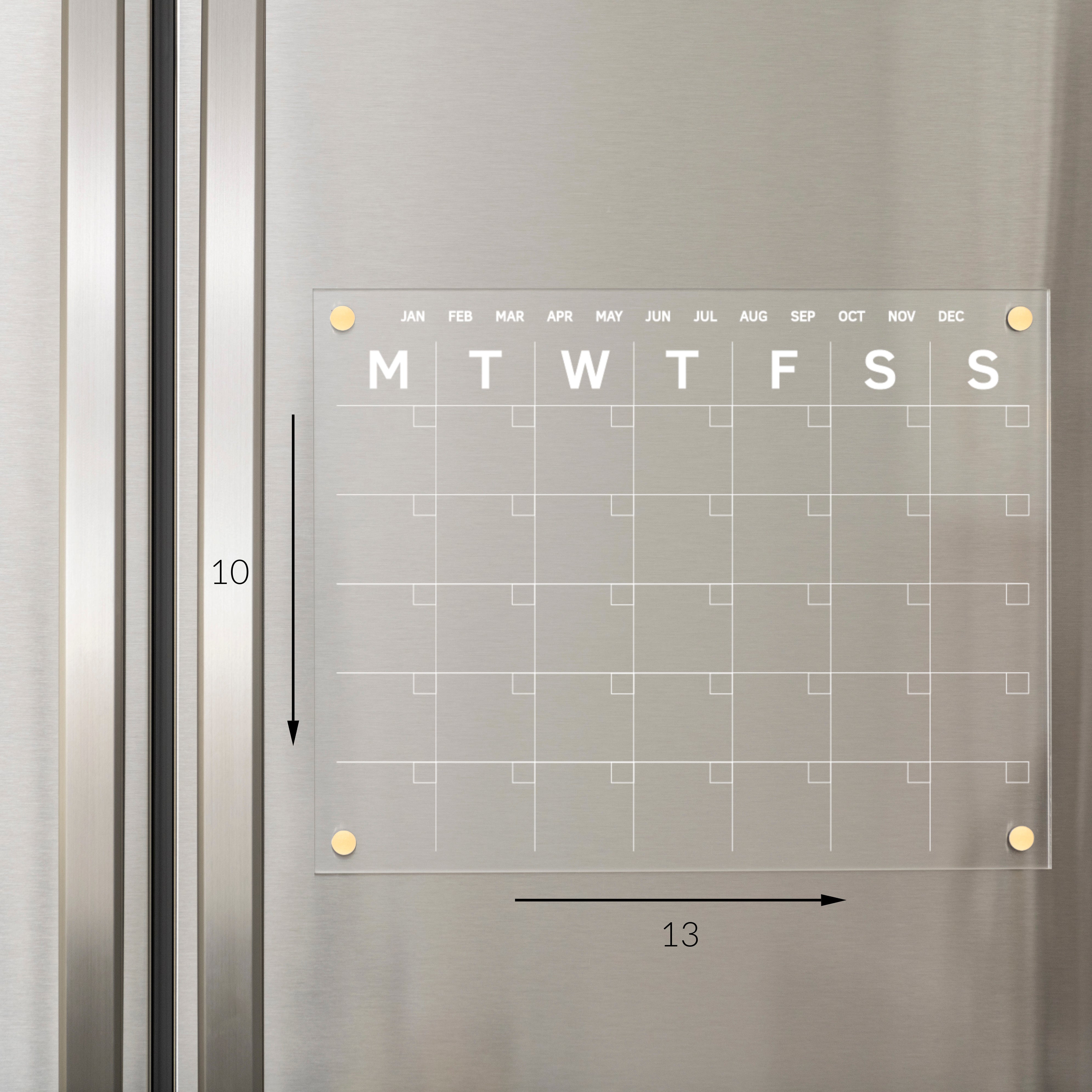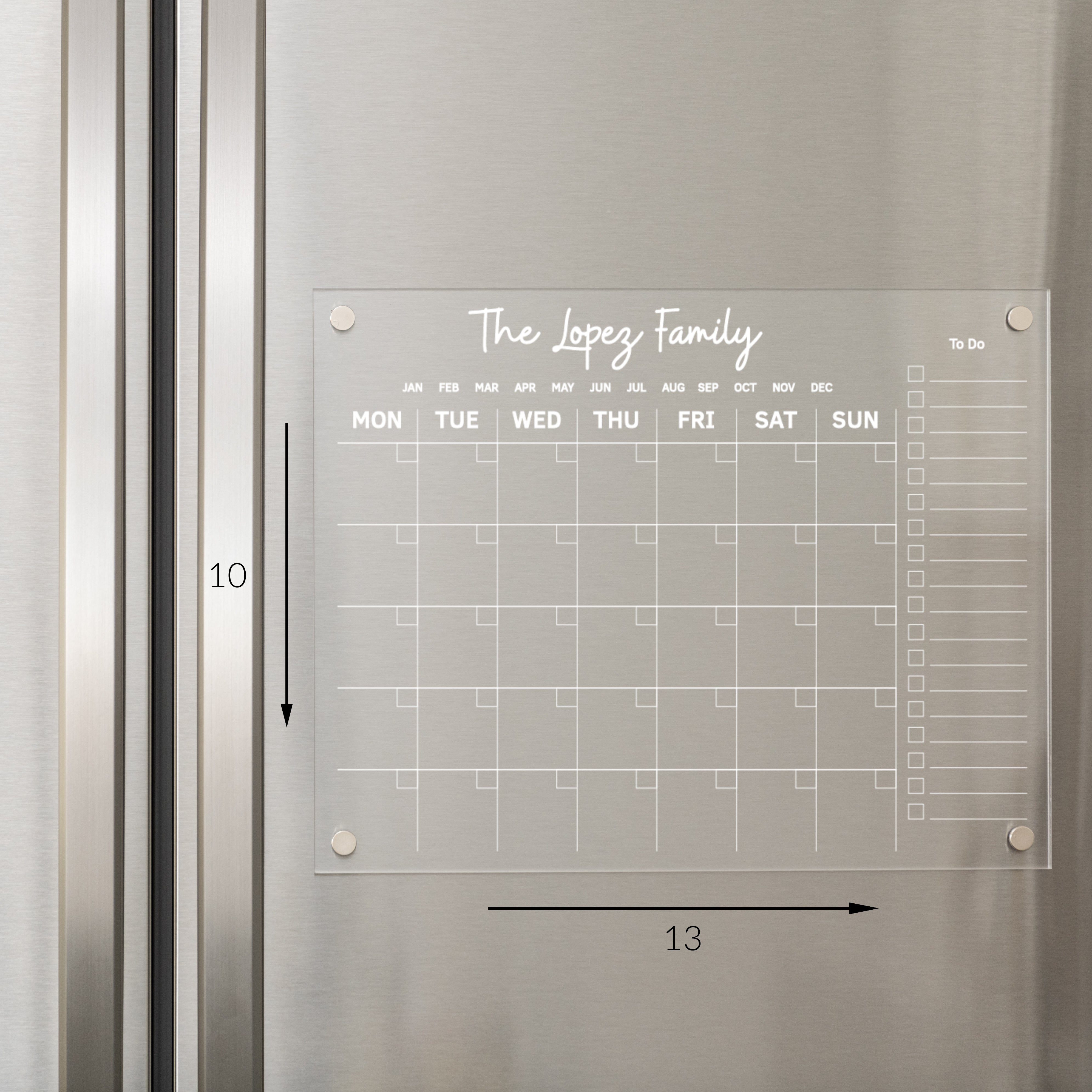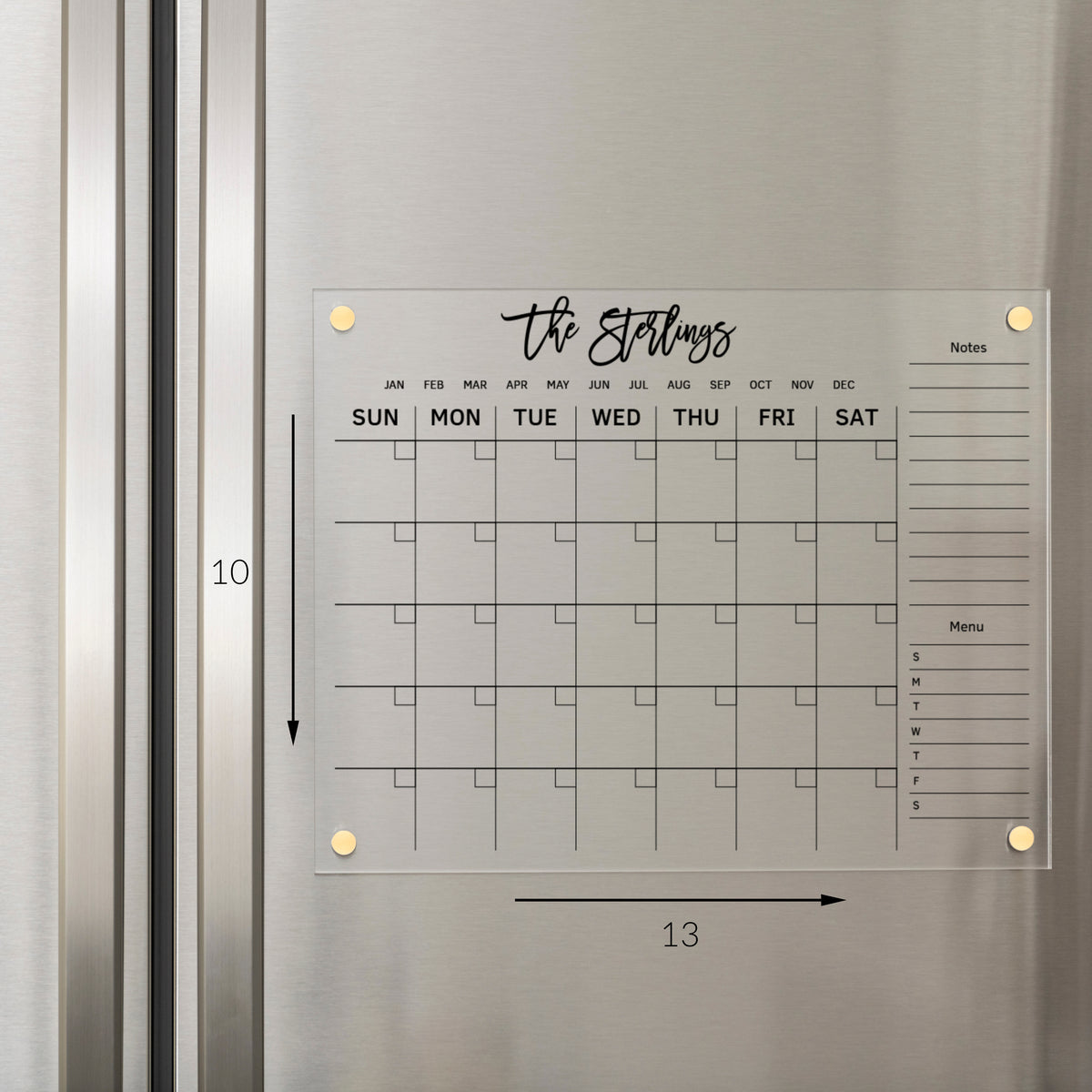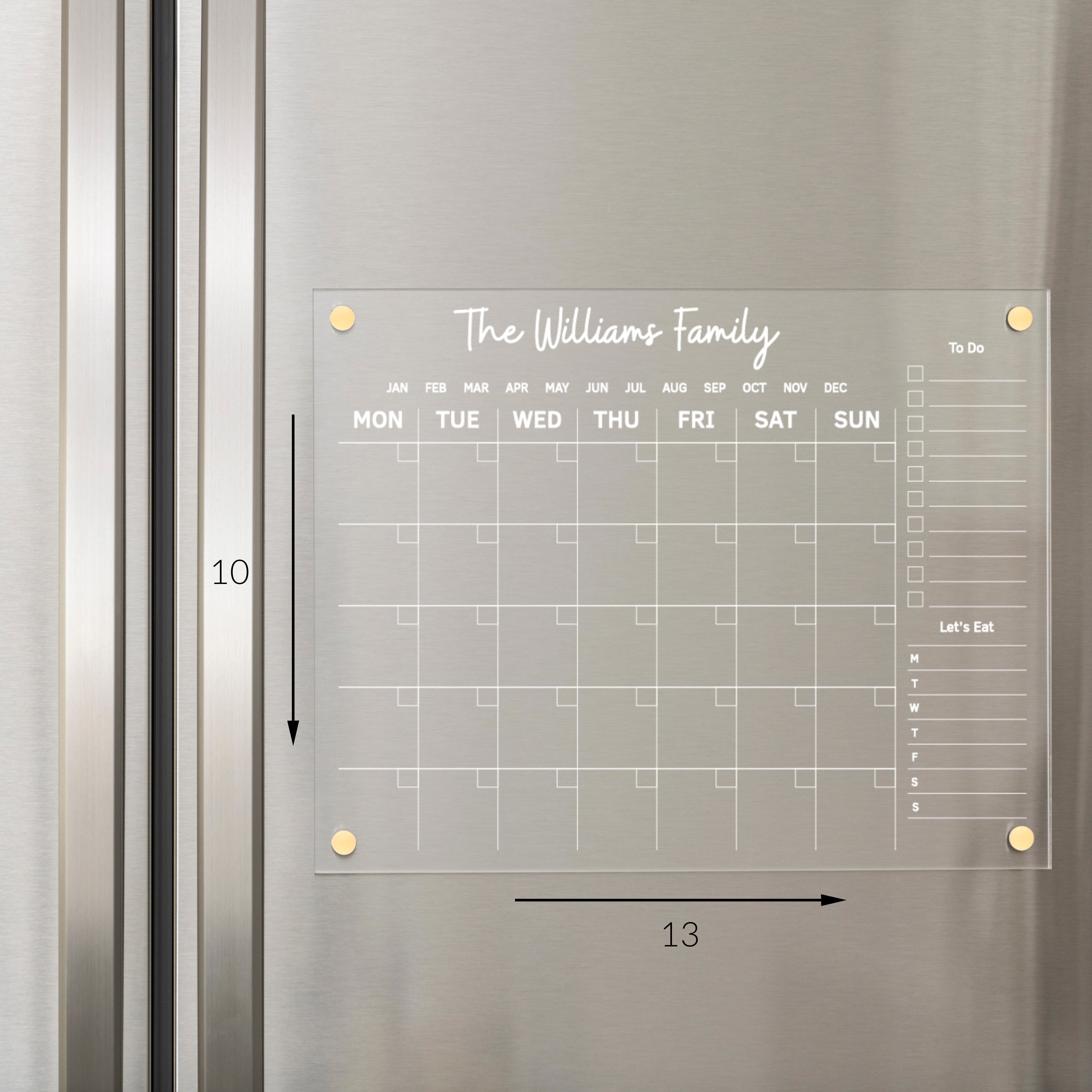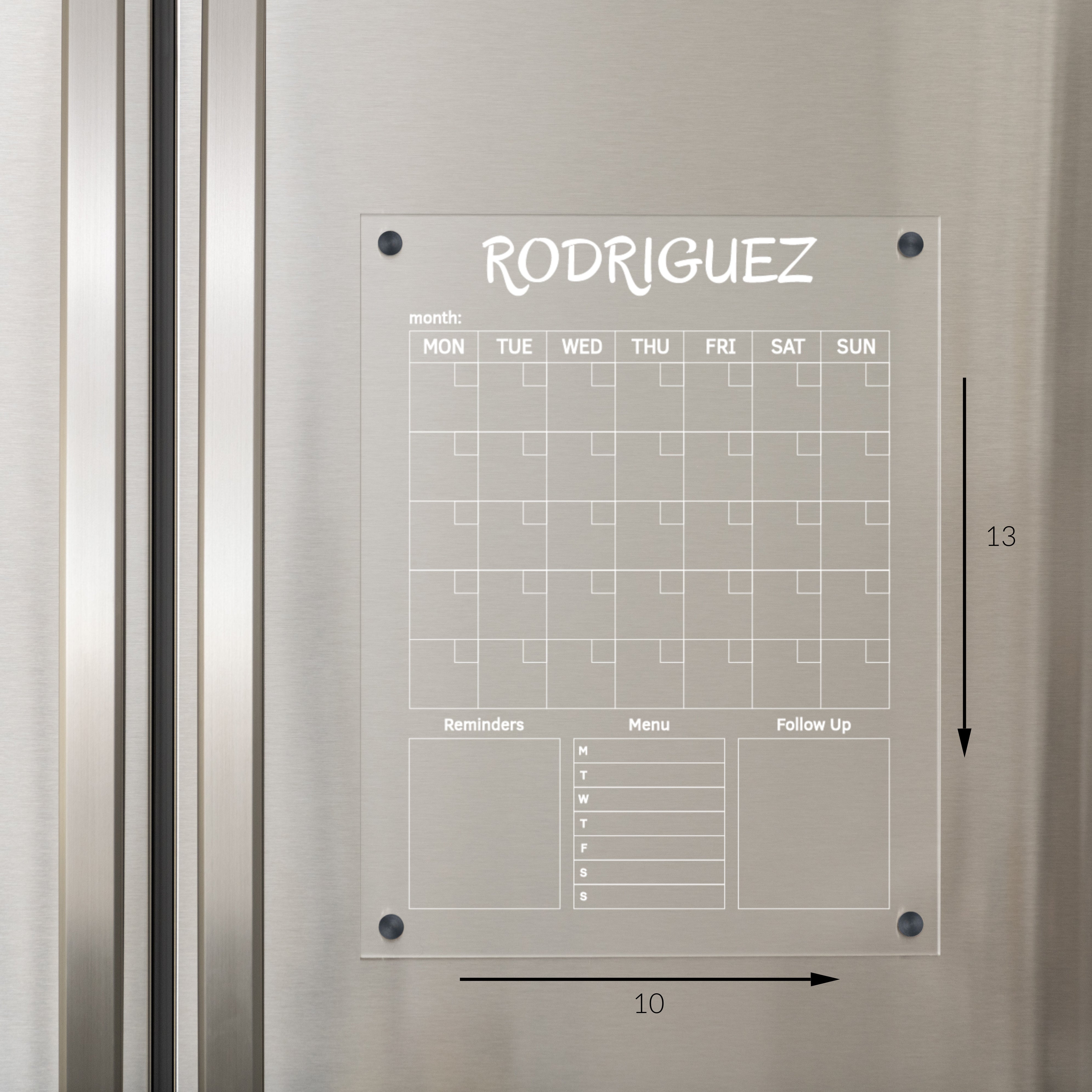 Keep track of birthdays, events, practices, appointments and more with this acrylic calendar. Stay organized all month long with daily boxes and up to three custom sections, such as menu, to do list, or notes.