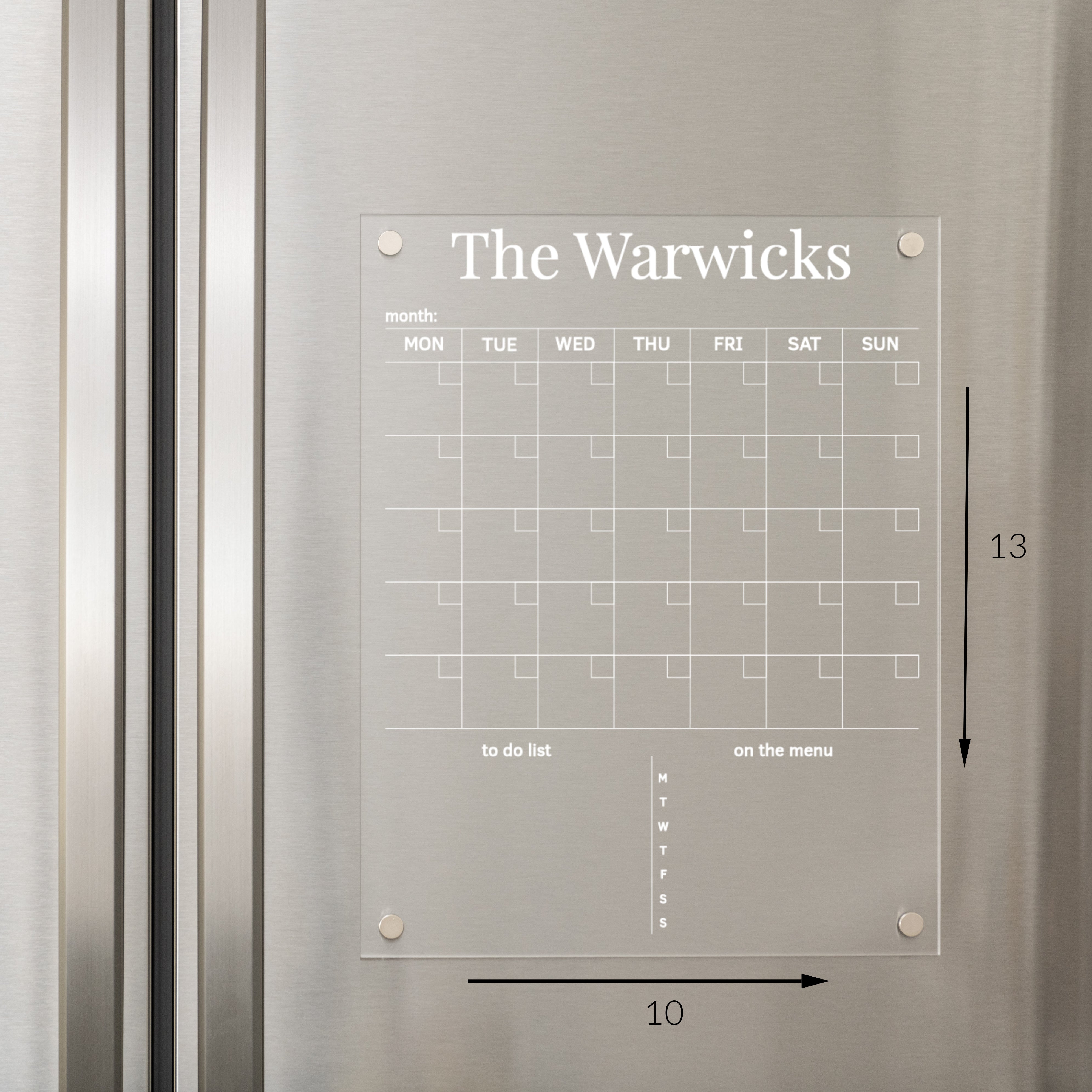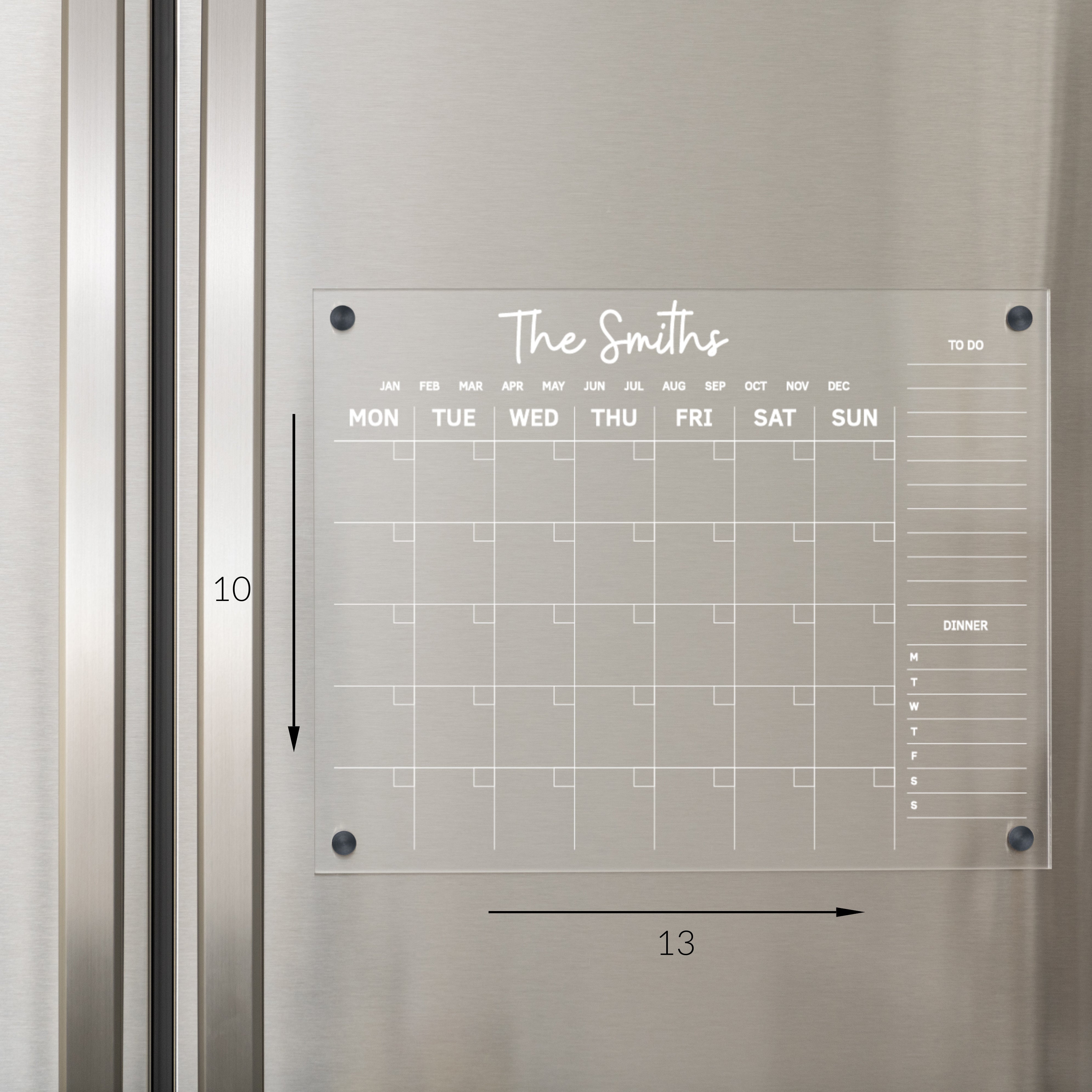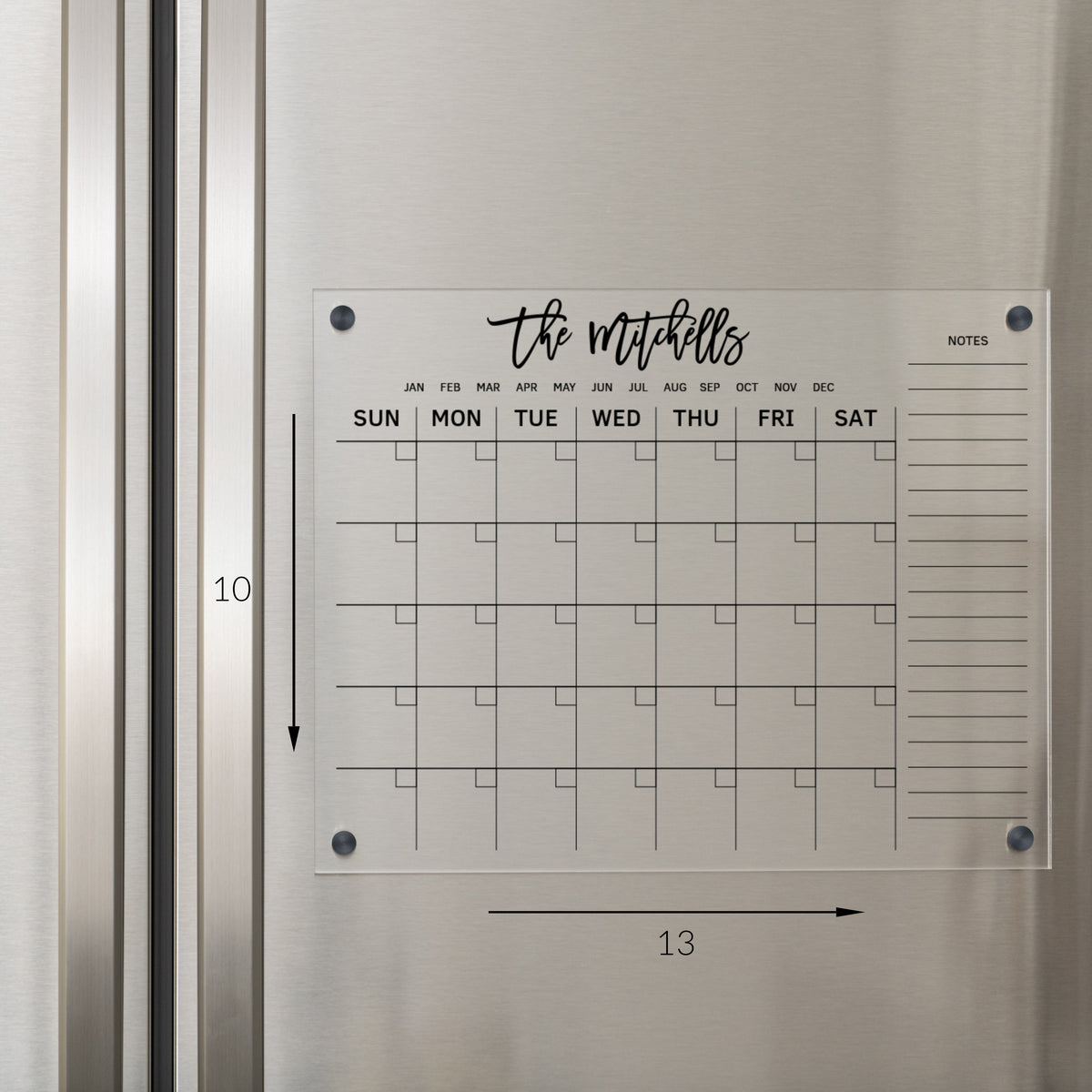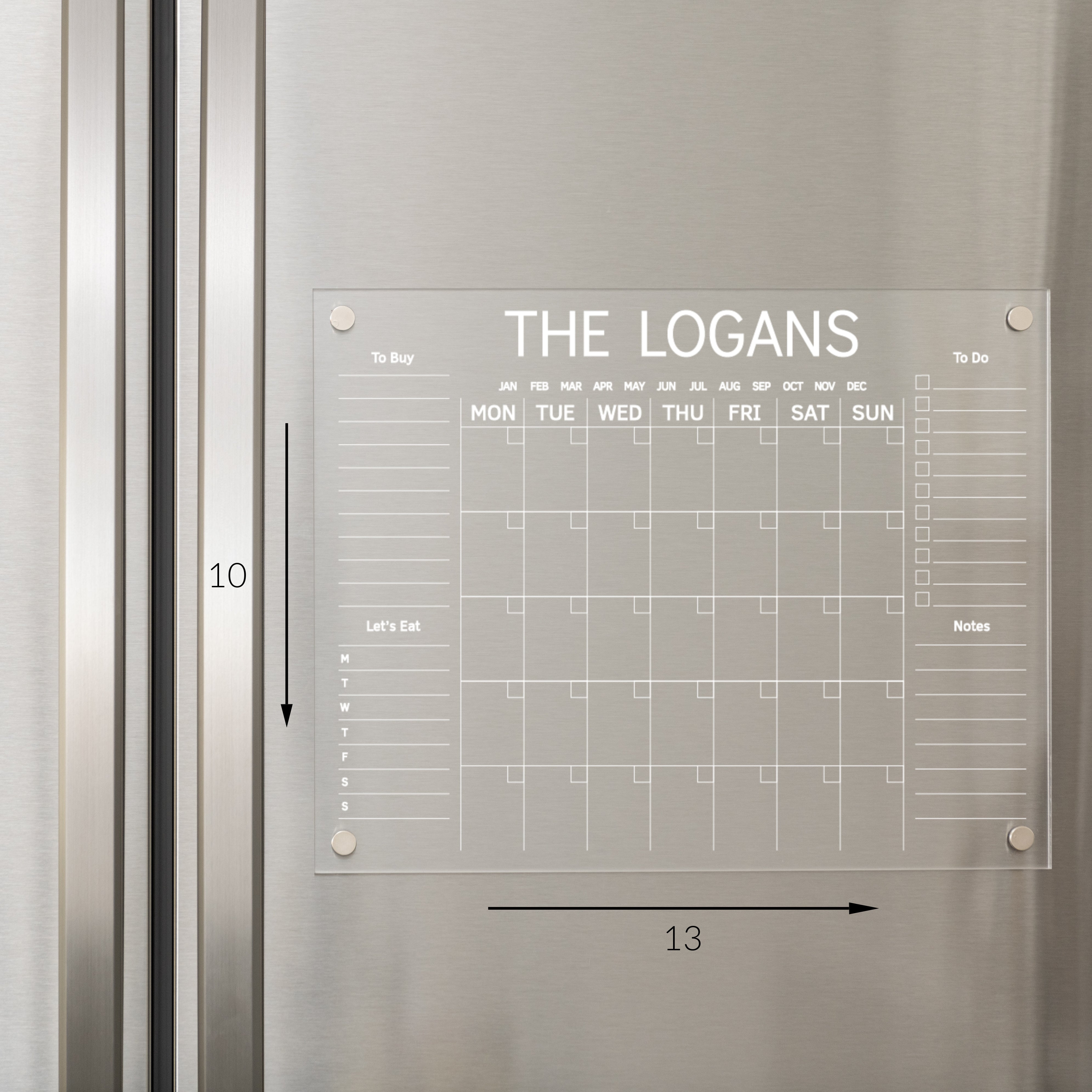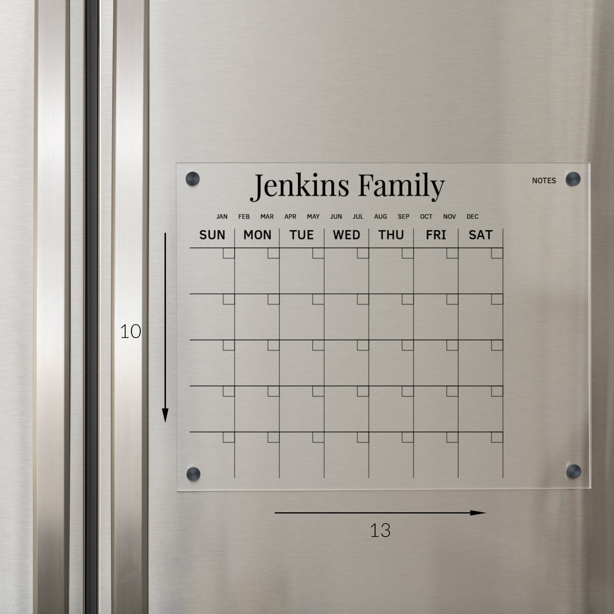 Keep track of birthdays, events, practices, appointments and more with this acrylic calendar. Stay organized all month long with daily boxes and up to three custom sections, such as menu, to do list, or notes.