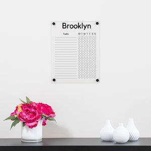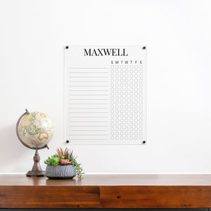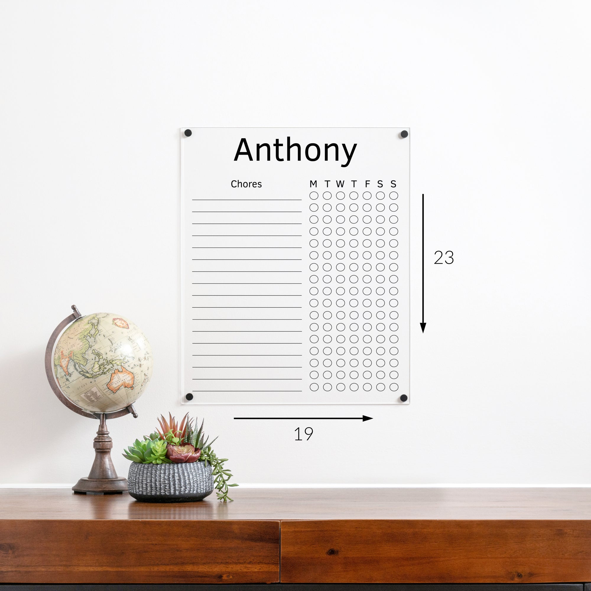 Keep kids organized with school work, chores, and other responsibilities. This modern, clear chore chart makes it easy to track progress each day of the week. Pair with our colorful liquid chalk markers for quick, fun updates!
